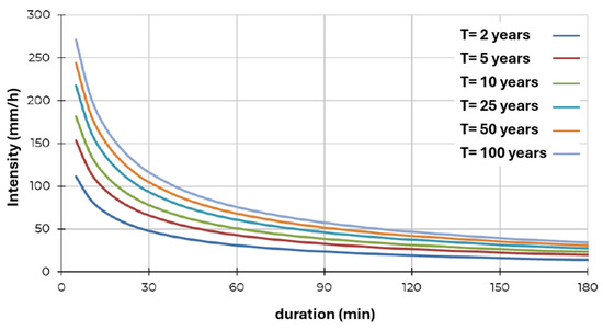 - Rico, A.; Elcano, G.; Guillén, N.; Eder, M.; Terré, M.F. Actualización Curvas IDF Cordoba; Instituto Nacional del Agua (INA): Ezeiza, Argentina; Facultad de Ciencias Exactas, Físicas y Naturales (FCEFyN): Cordoba, Argentina; Servicio Meteorológico Nacional (SMN): Buenos Aires, Argentina, 2024; p. 1.