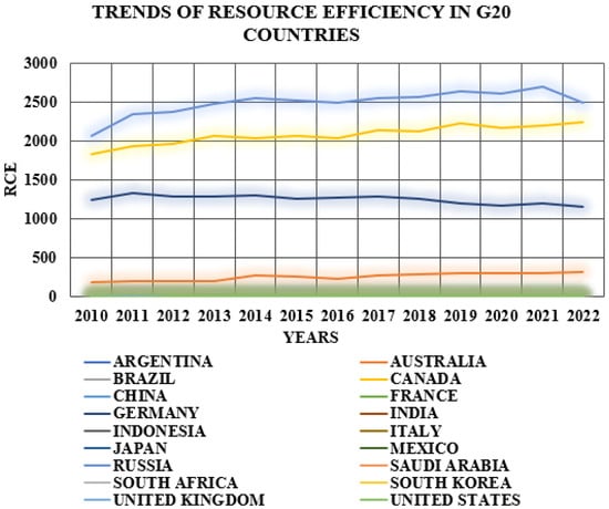 Demonstration of trends in RCE in G20 nations from 2010 to 2022.