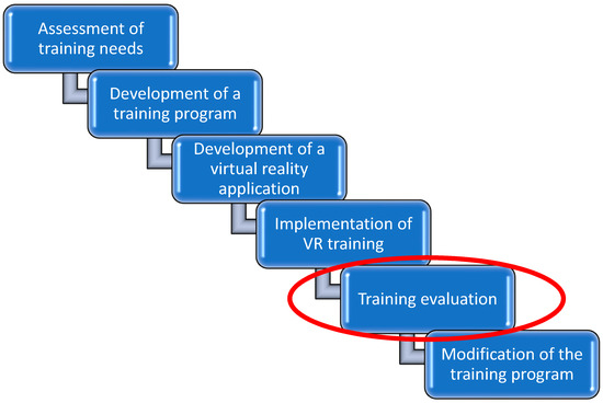 Virtual reality training involves individuals using VR equipment (putting on VR goggles and holding controllers in their hands—although in some new versions, the goggles detect hand movements and controllers are not needed) and performing tasks in a previously prepared application. Such applications usually have several scenarios. The scenarios can have different levels of difficulty and individual modules should be easy to repeat. In practice, this means that it is good for the application to not be too complicated and to be user-friendly in terms of re-approaching the training. From a learning perspective, it is good if the application has several short modules rather than one long module because in the event of making a mistake, the participant does not have to repeat the entire long training, but only needs to work on the given module again. When it comes to applications and their scenarios, various examples can be found in literature and practice. In recent three years, there has been, for instance, the paper article of [27] which describes a study of the use of virtual reality in pilot training for a private pilot license (PPL). The results show that VR works well for learning theory, pre-flight aircraft inspections, and procedures training, but users experienced isolation and difficulty developing motor skills, which may limit the effectiveness of this method in some aspects of practical training. The study in the article [28] shows VR as a tool for solving accidents in construction through insurance. The literature also describes VR training systems for learning how to assemble and disassemble car engines, designed using the Buick Verano engine as an example [29]. Such training includes replacing engine parts, reusable tools, an intuitive user interface, and the possibility of expanding to other engine models. The application has already been implemented at universities in China and is available as a free executable file and source code, in order to support the development of VR in the automotive industry. Another VR application [30] is used to train medical students in trauma situations, where participants complete a step-by-step simulation that includes diagnosis, treatment of bleeding, and late external fixation. VR can be also used in other medical fields for training purposes [31].