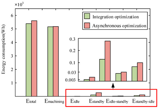 The energy consumption of integrated optimization is compared with that of asynchronous optimization.