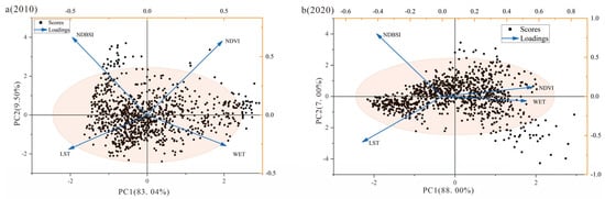 | Year | PCA | NDVI | LST | WET | NDBSI | Eigenvalues | Contribution Rate of Eigenvalues (%) |