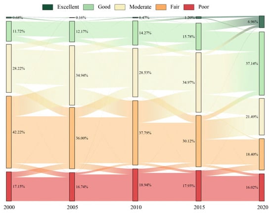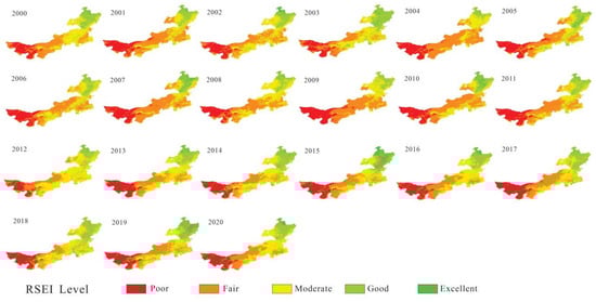 | RSEI Level | 2000 | 2005 | 2010 | 2015 | 2020 | |||||