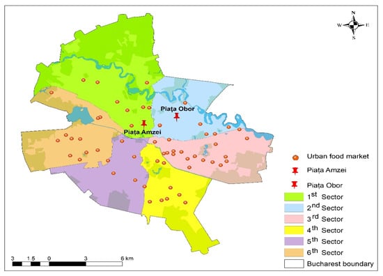 The location of Obor Market within Bucharest municipality (based on data provided by [70]).