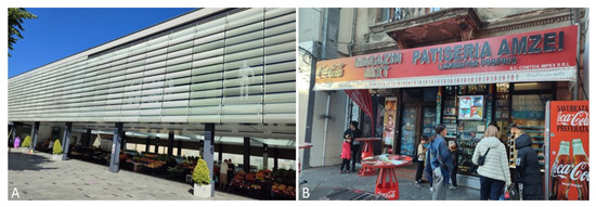 Images from Amzei Market (A,B). Vegetable, fruit, and flower section (A); Amzei pastry shop (B). (Source: personal archive).