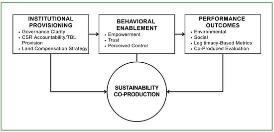 The convergence of stakeholder engagement, institutional design, and behavioral alignment reveals a critical shift toward integrated performance outcomes in post-mining sustainability governance. Thematic synthesis of stakeholder insights highlights that legitimacy building across diverse actor networks—governments, communities, and companies—is foundational for co-producing sustainable outcomes. This legitimacy is not merely normative but increasingly tied to measurable Triple-Bottom-Line (TBL) indicators such as soil restoration, inclusive livelihoods, and inter-agency coordination [76,77].