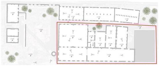 Based on these identified deficiencies, a consolidation plan was proposed, aimed at reinforcing the masonry walls through traditional techniques such as the scuci and cuci method or consolidating injections, as well as reconstructing the collapsed roofs to repurpose the internal spaces. Moreover, the effectiveness and benefits of inserting metal tie rods to mitigate overturning mechanisms were demonstrated by conducting additional verification analyses.