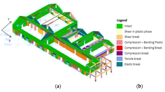 Subsequently, static non-linear analyses were performed revealing a very low safety coefficient in the y direction. Furthermore, an assessment of out-of-plane failures indicated the building’s susceptibility to overturning due to inadequate connections.