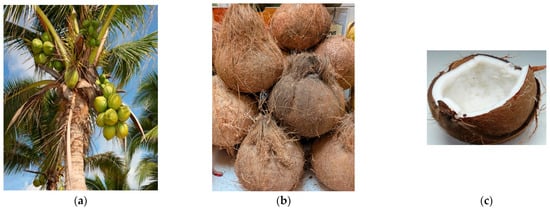 Figure 1a), which belong to the Arecaceae family and reach heights of 10 to 20 m. Coconut is a widely cultivated fruit, especially in tropical regions such as Ecuador [