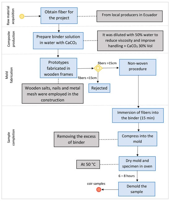 61]. Coir fiber panels are tested using tools such as the impedance tube, which measures the level of sound absorption as a function of frequency. This test involves placing cylindrical specimens cut from the panels in a special device that emits sounds of different frequencies, while sensors record the variations in the sound pressure level.