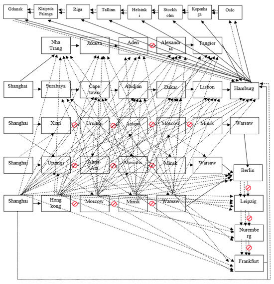 There are important to conclude this scientific article research based on the supply chain load transportation from Shanghai to Hamburg. Additional load transportation is organized from Hamburg to Gdansk by different transport modes. The loads from the origin city to the final destination are transported by multimodal transport: road, railroad, sea, and air. As demonstrated in open and closed ways, closed ways are not useful for transportation of loads due to different issues such as accidents, reparations, risks, weather conditions, piracy, geopolitics, natural disasters, sabotage, terrorist acts, and crimes (Figure 2).