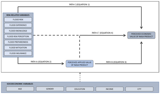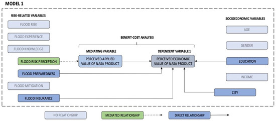 This section discusses the theoretical foundation for the variables included in the conceptual framework for understanding residents’ perception of the NASA product. We use a set of risk assessment variables (defined below) that can explain how individuals assess the benefit–cost of the NASA product and add to the existing research on the economic value of improved flood prediction systems (see [24]).