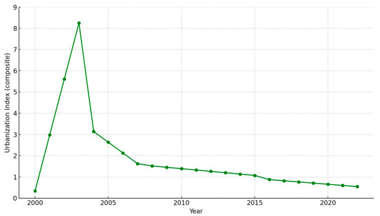 4.4. Comprehensive Urbanization Index Trajectory (2000–2022)