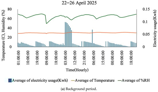 Period 1—Background Data (22 to 26 April 2025): Electricity usage data from the room were recorded before any system was installed.
