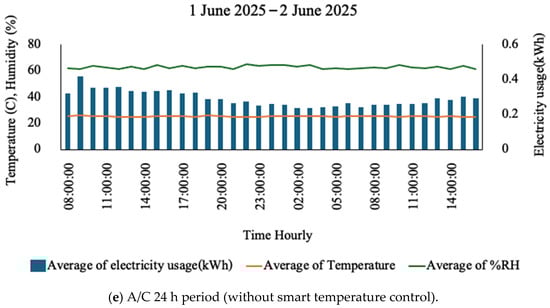 Period 5—The air conditioning system was operated for 24 h without temperature control (1 to 2 June 2025) to compare electricity usage with Periods 3 and 4, respectively.