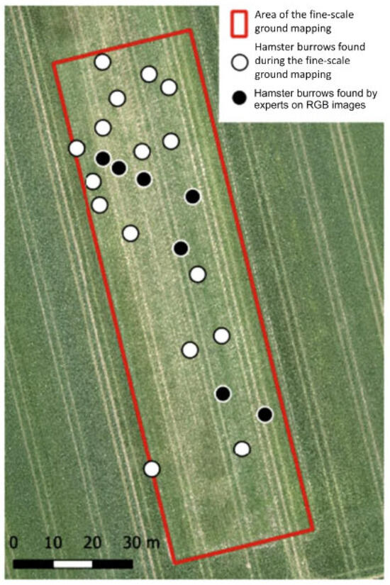 In addition to the manual field survey, RGB images taken by the drone were visually inspected by experts for hamster burrows that had been overlooked in the field.