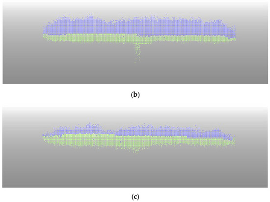 Laser scan of a specific hamster burrow entrances displayed as a point clouds from three different datasets, (a) Voyager 20 m, (b) Voyager 30 m, and (c) Voyager 120 m.
