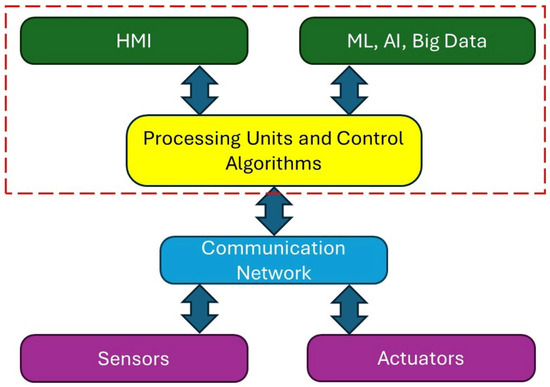 Cyber-physical systems are the next-generation paradigm for designing systems that are increasingly being adopted in industry, with the ability to describe, manage, and integrate heterogeneous systems [24]. Gunes defines CPSs as “complex, multidisciplinary, physically aware next-generation engineering systems that embed embedded computing technology (part cybernetics) in physical phenomena through the use of transformative research approaches” [22]. Rajkumar describes CPSs as “physical and engineering systems whose operations are monitored, coordinated, controlled, and integrated by a computing and communication core” [25]. Zhou describes CPSs as “intelligent systems, where sensors, actuators, and controllers are integrated to support the interaction between the physical world and the cyber world” [26]. Burg describes CPSs as “complex and heterogeneous distributed systems typically consisting of many sensors and actuators, which are connected to a group of computing nodes” [23]. Khaitan describes a CPS as a “system of systems” in which complex, heterogeneous systems interact continuously. Proper regulation of such systems requires careful codesign of the overall CPS architecture [27].