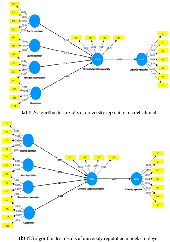 PLS algorithm test results of university reputation model.