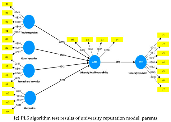 PLS-SEM algorithm results of the university reputation model (total sample).