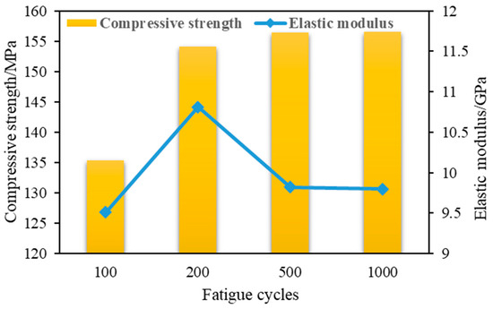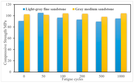 Compressive strength of caprock mudstone after different fatigue cycles.