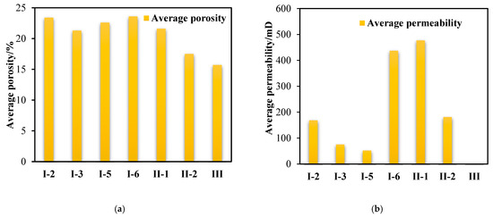 The reservoir is divided into three sand groups vertically: Sand Group I, Sand Group II, and Sand Group III (Table 2). Sand Group I is further subdivided into seven sub-layers, and Sand Group II and III are subdivided into two and three sub-layers. The average porosities of sub-layers I-2, I-6, and II-1 are 23.4%, 23.6%, and 21.6%, respectively. The average permeabilities are 168.5 mD, 437.3 mD, and 476.9 × 10 mD, respectively.