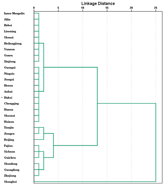 To analyze the causes of the differences in risk levels across provinces, the average risk values over three years for each province are clustered. IBM SPSS Statistics 26 software is used to perform ward clustering, and Figure 6 displays the clustering results. Based on the clustering results, all provinces are divided into three categories. The overall risk averages and the risk averages of the four primary indicators are calculated for each of the three categories, with the results presented in Table 4. First, there are significant differences in the overall risk averages across different categories. The risk differences in the information personnel dimension across the three categories are not significant, indicating that information personnel is not the primary cause of the disparities. The information technology dimension is the key factor contributing to the differences in digital economy information security risk values, with the mean value for Category III being significantly higher than that of the other two categories. Category I is information-personnel-information-environment-dominated risk type, Category II is information-personnel-information-technology-dominated risk type, and Category III is information-information-technology-dominated risk type.