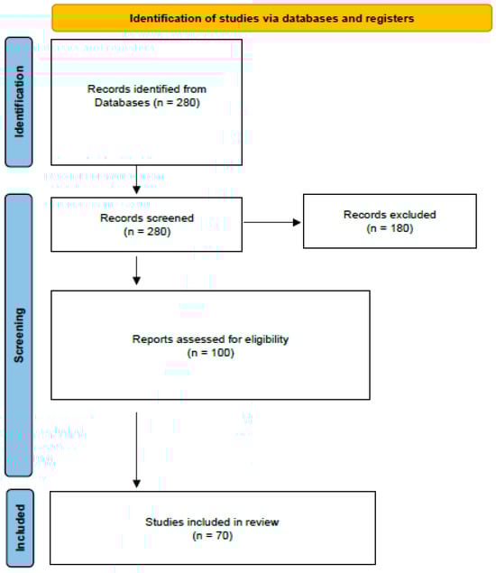 A comprehensive search was performed using three major electronic databases: Scopus, Web of Science, and PubMed. The search covered publications from January 2010 to April 2024. Keywords and Boolean operators included combinations of: “methane emissions”, “ruminants”, “livestock”, “GHG mitigation”, “methane measurement”, “in vitro”, “in vivo”, “indirect methods”, “feed additives”, “rumen microbiota”, “sustainable livestock”, and “climate-smart agriculture”.