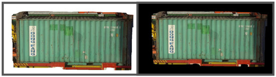 DeepLabv3+ pre-trained performance (IoU) on experiments 1 (20 random images), 2 (40 images without red cargo containers), and 3 (20 images with only red cargo containers). The experiments were tested on all different model weights with each respective loss function: w18 (cross entropy), w27 (L1 loss), w35 (L2 loss), w40 (cross entropy with weighted classes). Comparison of model performance in original image against white and black backgrounds.