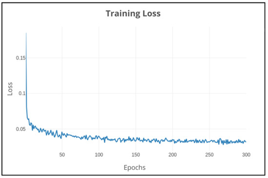 DeepLabv3+: Training loss on 300 epochs using default parameters.