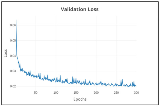 DeepLabv3+: Validation loss on 300 epochs using default parameters.