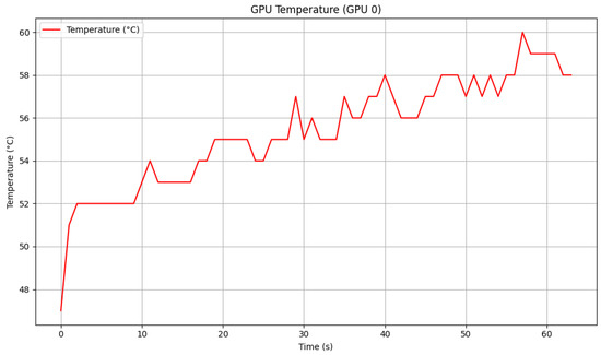 GPU temperature during 60 s simulation using trained DeepLabv3+ as inference model.