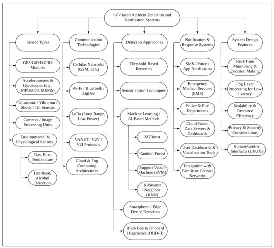 Classification of IoT-based vehicle accident detection and notification systems.