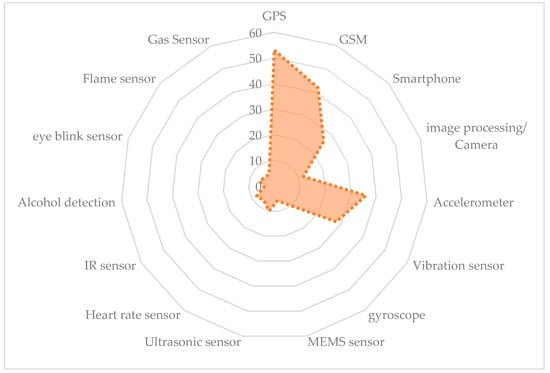 To offer a fast and suitable connection between a vehicle crash and appropriate medical assistance, Choudhury et al. [63] developed a system utilizing an Arduino Uno microcontroller as the central part of the gadget. In addition, they utilized an accelerometer module to identify the crash, a heartbeat sensor for tracking the heartbeat of the motorist, a GPS sensor to identify the area of the crash as well as a GSM sensor to transmit an SMS to the closest medical center, closest police station, and a family member of the motorist using a google maps connection to the area and heartbeat of the motorist. Patil et al. [64] utilized IoT to identify vehicle crashes and notify the relevant parties of the crash severity level for urgent situations, as well as to determine the vehicle’s health with particular details. Mobile phones, GPS and GSM modules, vehicular ad hoc networks, as well as smartphone software are generally utilized in crash recognition. Data can be delivered to the closest medical center and police station by utilizing a system that precisely locates the vehicle crash.