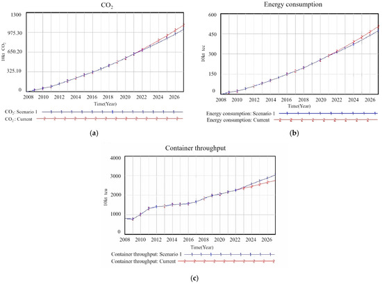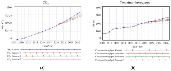 The simulation results reveal that increases in container throughput at Shanghai Yangshan Port are accompanied by corresponding rises in carbon emissions and energy consumption within the GPCDS. This trend poses significant challenges to the pursuit of sustainable and low-carbon development in the transportation sector. Therefore, the implementation of targeted policy measures is essential to support the GPCDS low-carbon transition.