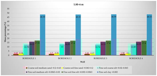 Distribution of soil particle size fractions by borehole and depth 1.80–6 m.