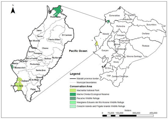 The sample is intentionally non-probabilistic based on the study objectives and population characteristics and consists of Machalilla National Park (PNM), which, according to Ecuadorian law, is a protected natural area (ANP) located in the coastal territory of the province of Manabí. It occupies part of the municipal territories of Puerto López and Jipijapa, in the parishes of Puerto Cayo, Machalilla, Julcuy, and Puerto López [58].