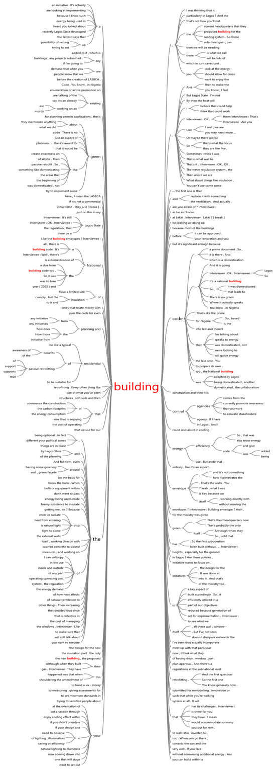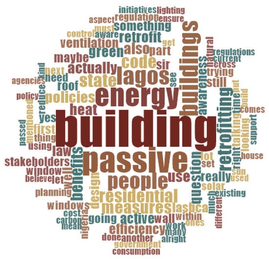 Thematic analysis was used to uncover and explain themes of retrofit benefits to the passive retrofitting of residential buildings, following Braun and Clarke‘s [80] six-step recommendation. The following are the steps recommended by the authors: (1) Review and familiarisation with the transcript; (2) Code development and highlighting of key analytical concepts; (3) Grouping of related codes; (4) Evaluation of themes for the entire dataset and the coded data. A theme map can help to structure the research and clarify the links between subjects; (5) Name and define topics; and (6) Reporting. The analysis was performed using the NVivo Software (Version 12).