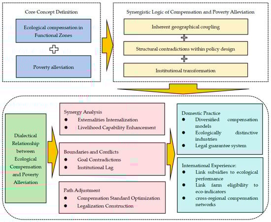 The article is structured as follows: Section 2 presents the theoretical logic and analytical framework. Section 3 details the dialectical relationship between ecological compensation and poverty alleviation in functional zones and presents innovative pathways, including long-term mechanism design for ecological compensation and poverty alleviation synergy. Section 4 provides a discussion. Section 5 presents the conclusion.