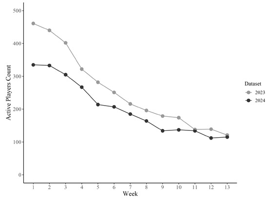 Count of active players per week in the 2023 and 2024 campaigns.