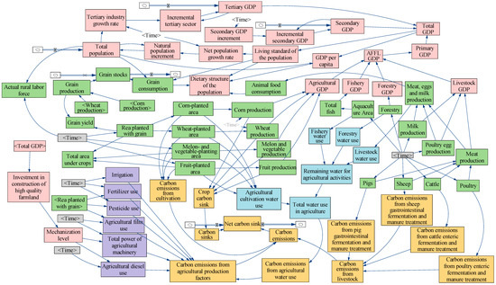 APA StyleYuan, W., Wang, H., Liu, Y., Han, S., Cong, X., & Xu, Z. (2025). Simulation of Water–Energy–Food–Carbon Nexus in the Agricultural Production Process in Liaocheng Based on the System Dynamics (SD). Sustainability, 17(14), 6607. https://doi.org/10.3390/su17146607