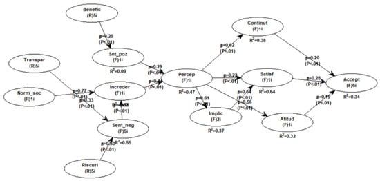 The initial structural equation model (SEM) incorporates all relevant latent variables and their hypothesized relationships. This setup, based on the initial hypotheses, enables the exploration and testing of theoretical relationships, such as the impact of “Transparency” on “Trust”.