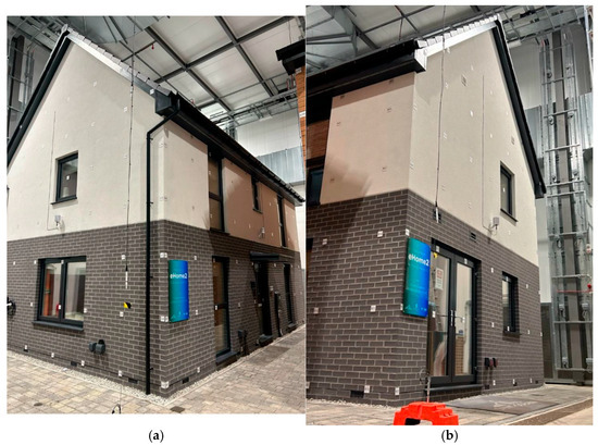 Elevations of eHome2, another case study home constructed in Energy House 2.0 environmental chamber one: (a) front elevation; (b) rear elevation.
