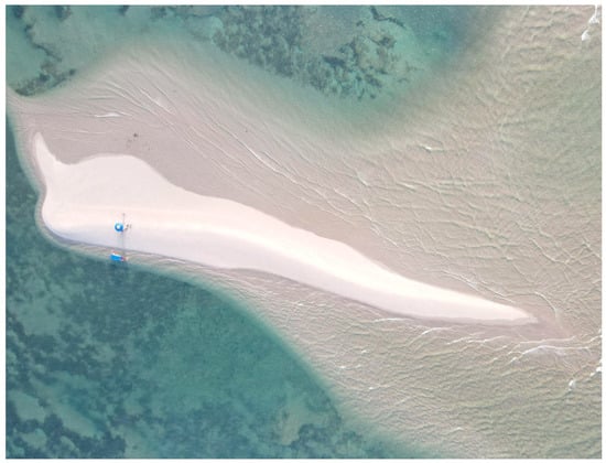 A notable feature of this geosite is its periodic exposure: it emerges only during low tide and is submerged at high tide, limiting access for visitors to specific times of the day. The sandbank exhibits a characteristic tongue-shaped morphology (Figure 10) and supports tourism activities only during its brief windows of exposure. The geosite is also marked by pronounced morphological variability, driven by the dynamic interaction of tidal and wave dynamics.
