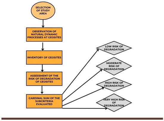 Methodological framework for assessing the degradation risk of geosites inventoried in the municipalities of Macau, Guamaré, and Galinhos, Rio Grande do Norte, northeastern Brazil.