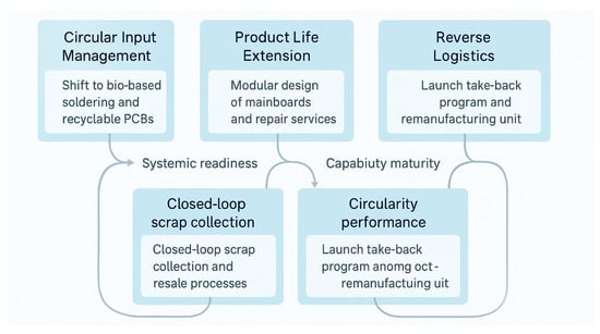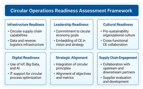 This shift involves integrating CE into the core structure of operations strategy, requiring changes in how processes are configured, how success is measured, and how organizational capabilities are developed. It also demands coordination across functions such as procurement, product development, and logistics—making circularity not just a technical strategy, but a cross-functional operational philosophy [40,41,42].