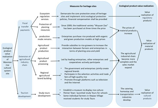 Ecological product value realization paths of the Wannian Rice Culture System site.