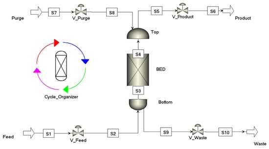 Process flowsheet diagram (PFD) of the TVSA process in Aspen Adsorption.