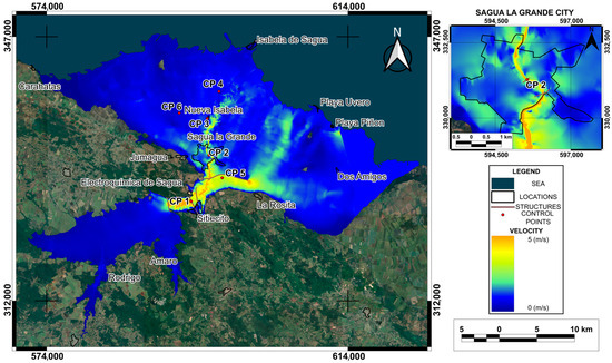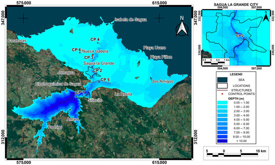 - Socas, R.A.; González, M.A.; Marín, Y.R.; Castillo-García, C.L.; Jiménez, J.; da Silva, L.D.; González-Rodríguez, L. Simulating the Flood Limits of Urban Rivers Embedded in the Populated City of Santa Clara, Cuba. Water 2023, 15, 1805. [Google Scholar] [CrossRef]