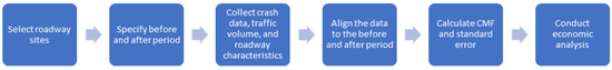 The CMFs and cost-effectiveness of shoulder rumble strips and road lighting treatments on freeways were developed employing the steps demonstrated by the flowchart in Figure 1 and the procedures described underneath. The procedures contain the two major steps, including data collection and preparation, and the methodology. The methodology describes the CMF calculations and the economic analysis.