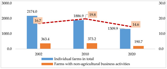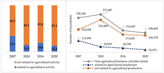- Selected characteristics of farming households engaged in non-agricultural business activities (e.g., the size of the farm both in economic terms and in terms of the utilized agricultural area, the relationship between the additional business activity and agricultural production).